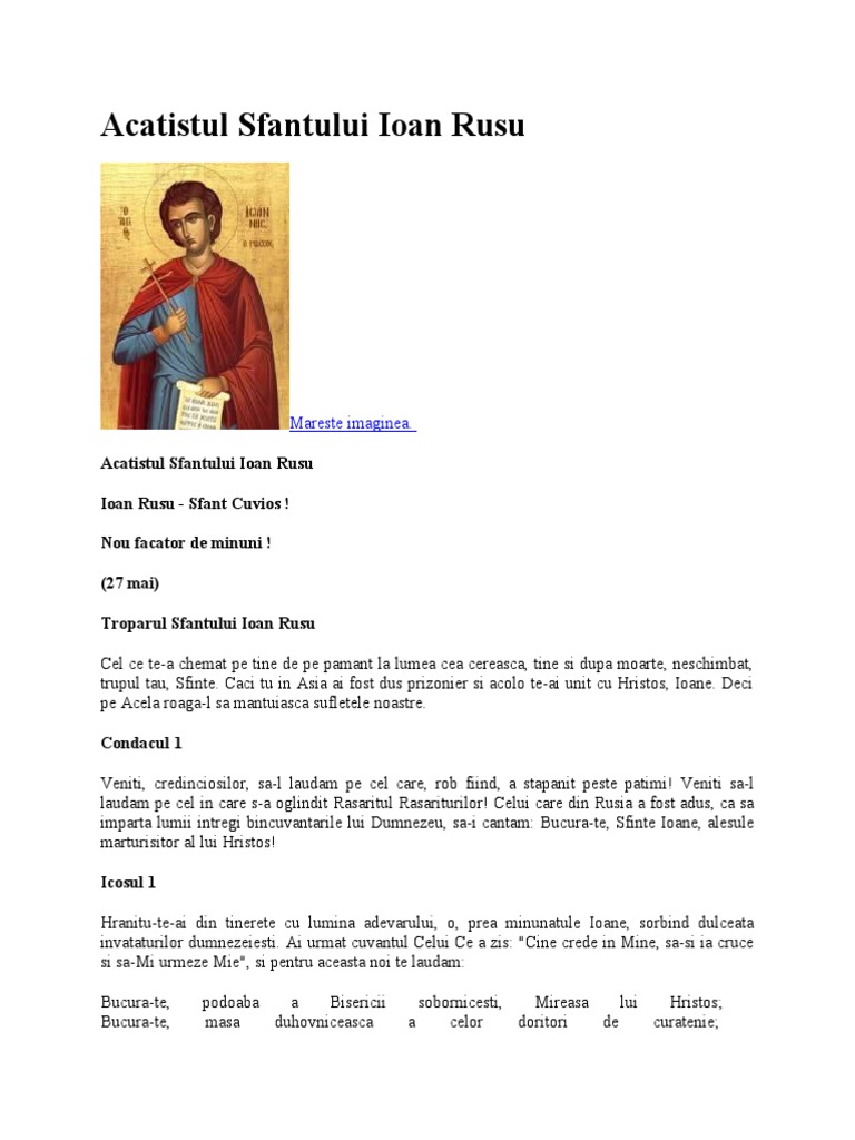 Acatistul Sfantului Ioan Rusul 27 Mai Mulțumesc