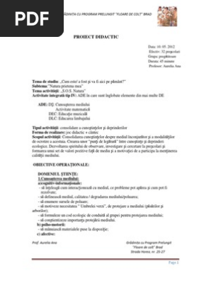 Proiect Didactic Activitate Integrata Educatie Ecologica