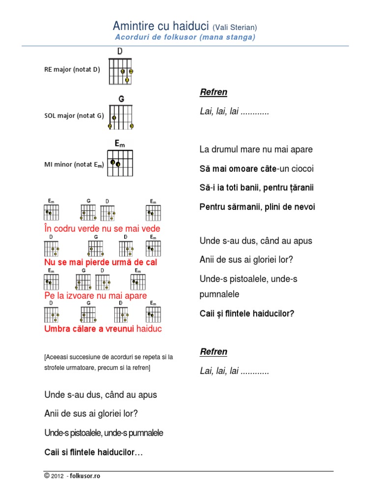Amintire Cu Haiduci Acorduri Si Ritm