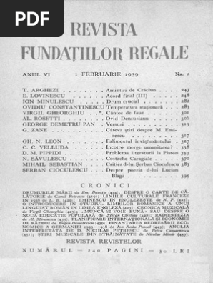 Rev Fundatiilor Regale 1939 02 1 Feb Revista Lunara De Literatura Arta Si Cultura Generala