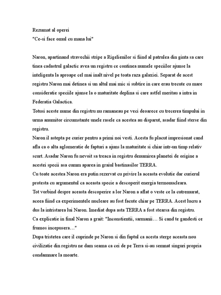Ce Si Face Omul Cu Mana Lui Rezumat