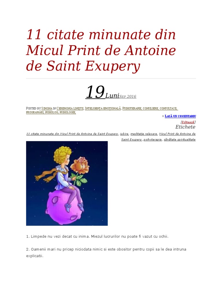31 De Citate Excepționale Din Micul Prinț O Lecție Pentru Fiecare Zi