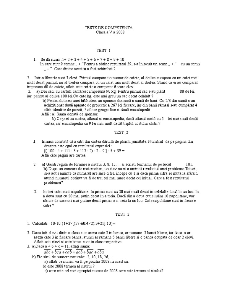 Probleme Matematica Cls Iv Si V Tip Distributie Elevi In Banci