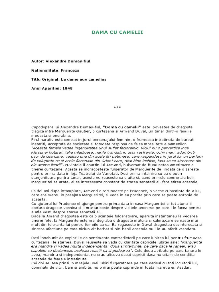 Rezumat Scurt Dama Cu Camelii De Alexandre Dumas Fiul Rezumate Cărți Citeste Cărți Online Pdf Caracterizări Referate Si Comentarii Cărți