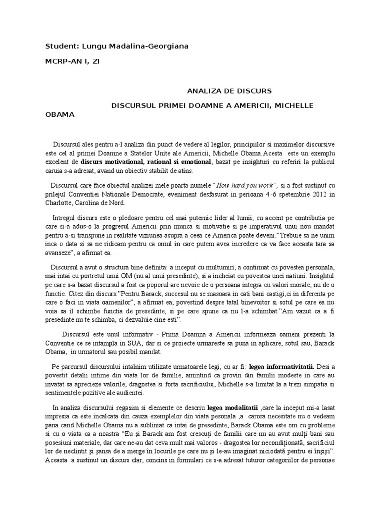 Analiza De Discurs Michelle Obama