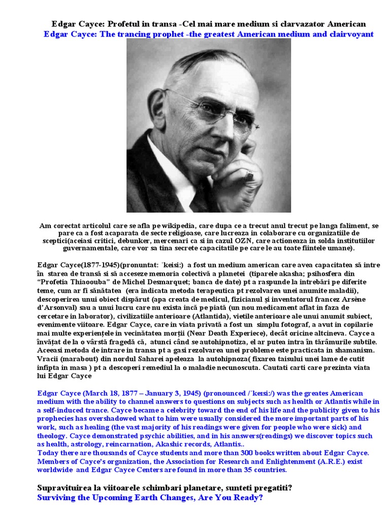 Teoria Conspiratiei Extraordinarele Preziceri Ale Lui Edgar Cayce Incep Sa Se Confirme Video Cer Si Pamant Romanesc