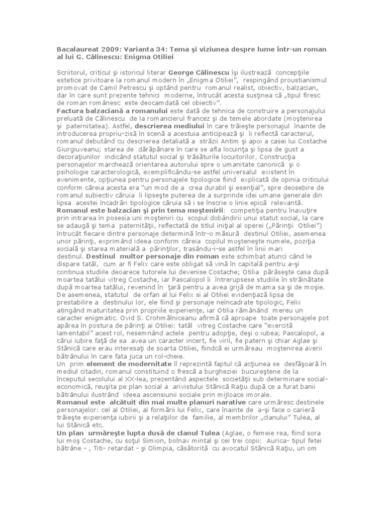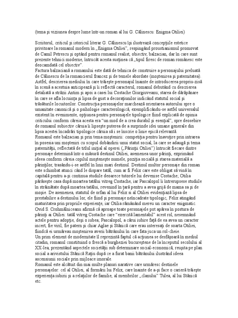 Doc Călinescu Enigma Otiliei Temă Si Viziu Ne Andreea Sb Academia Edu