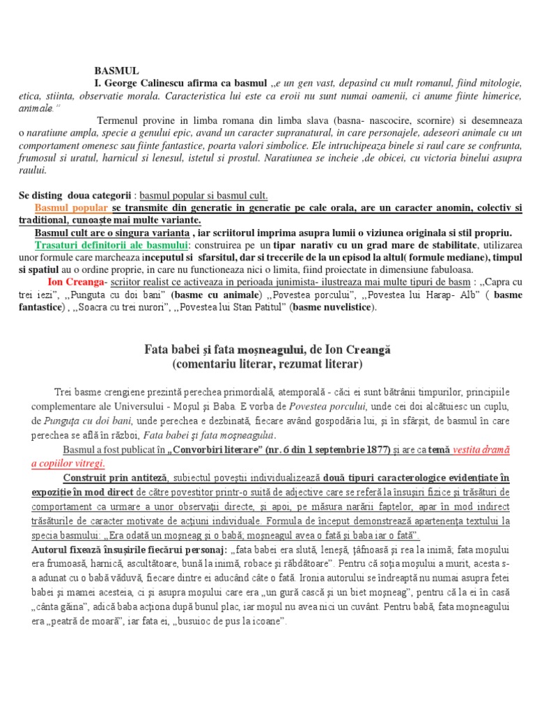 Fata Babei Si Fata Mosneagului Comentariu Literar