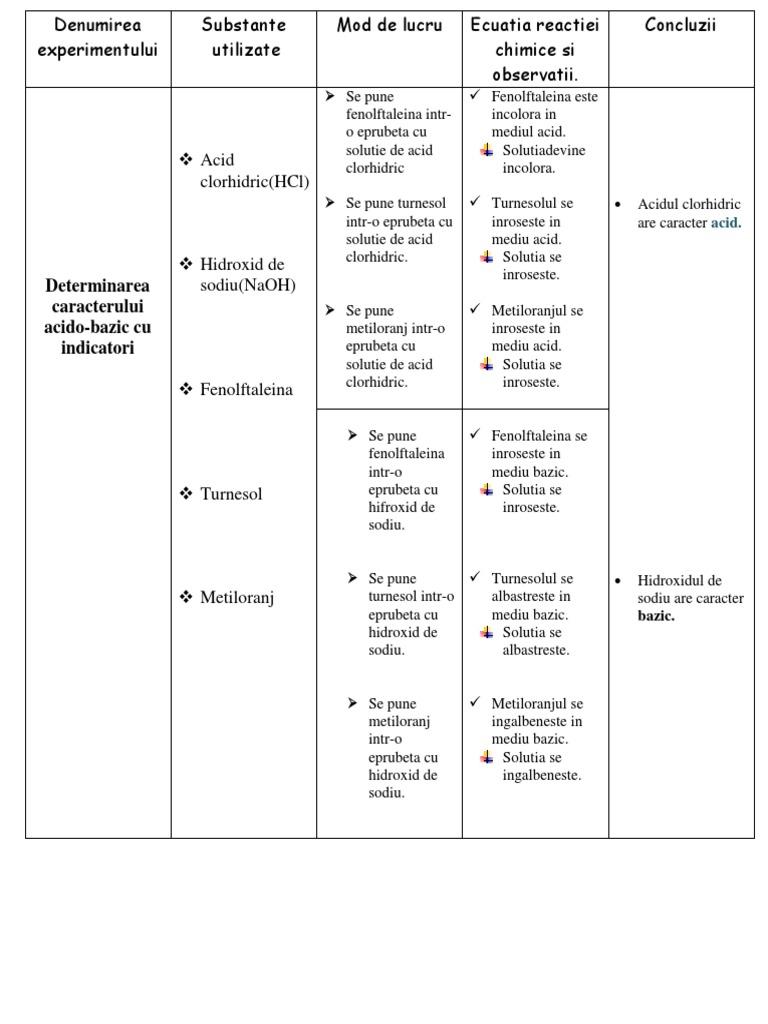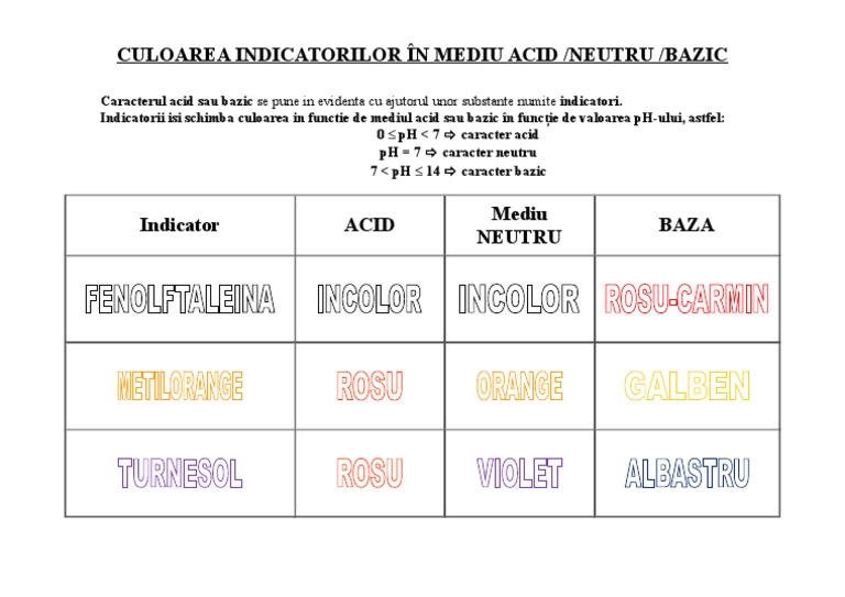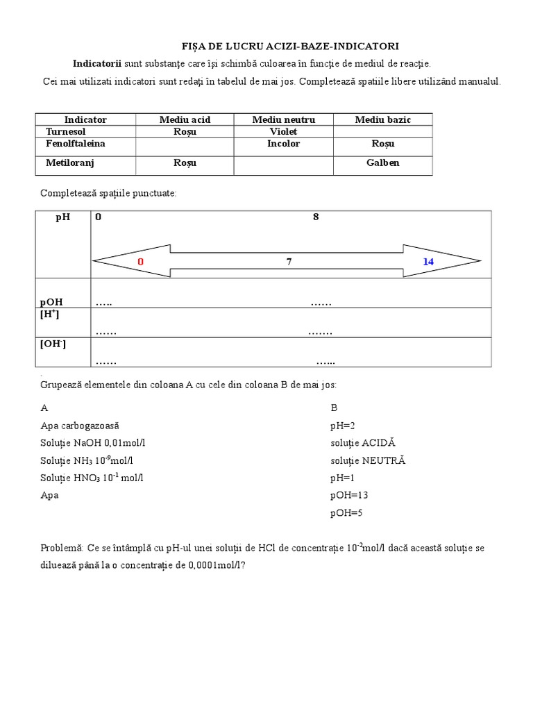 Fisa De Lucru Acizi Baze Indicatori
