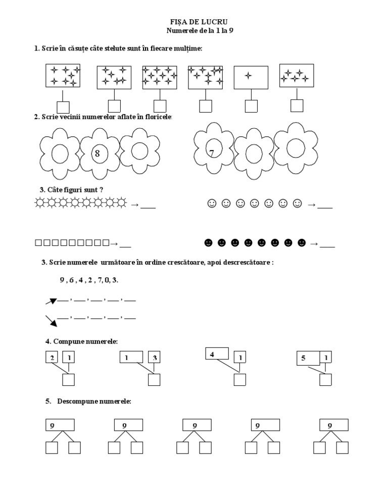 Fisa De Lucru Numerele De La 1 La 9