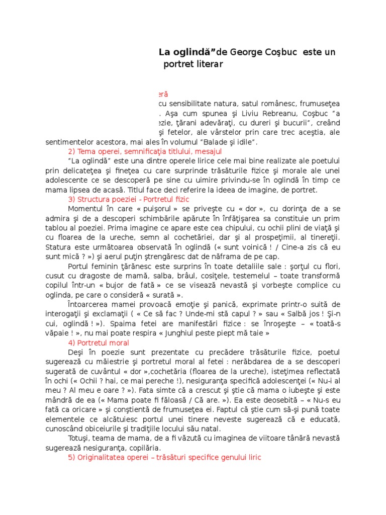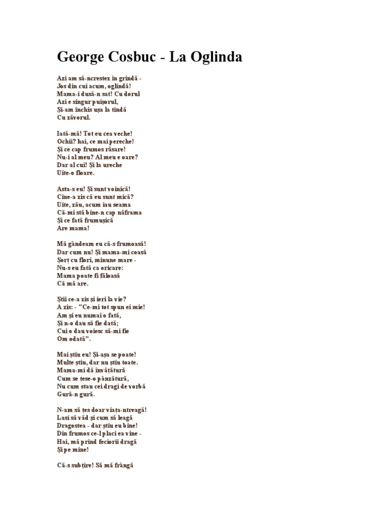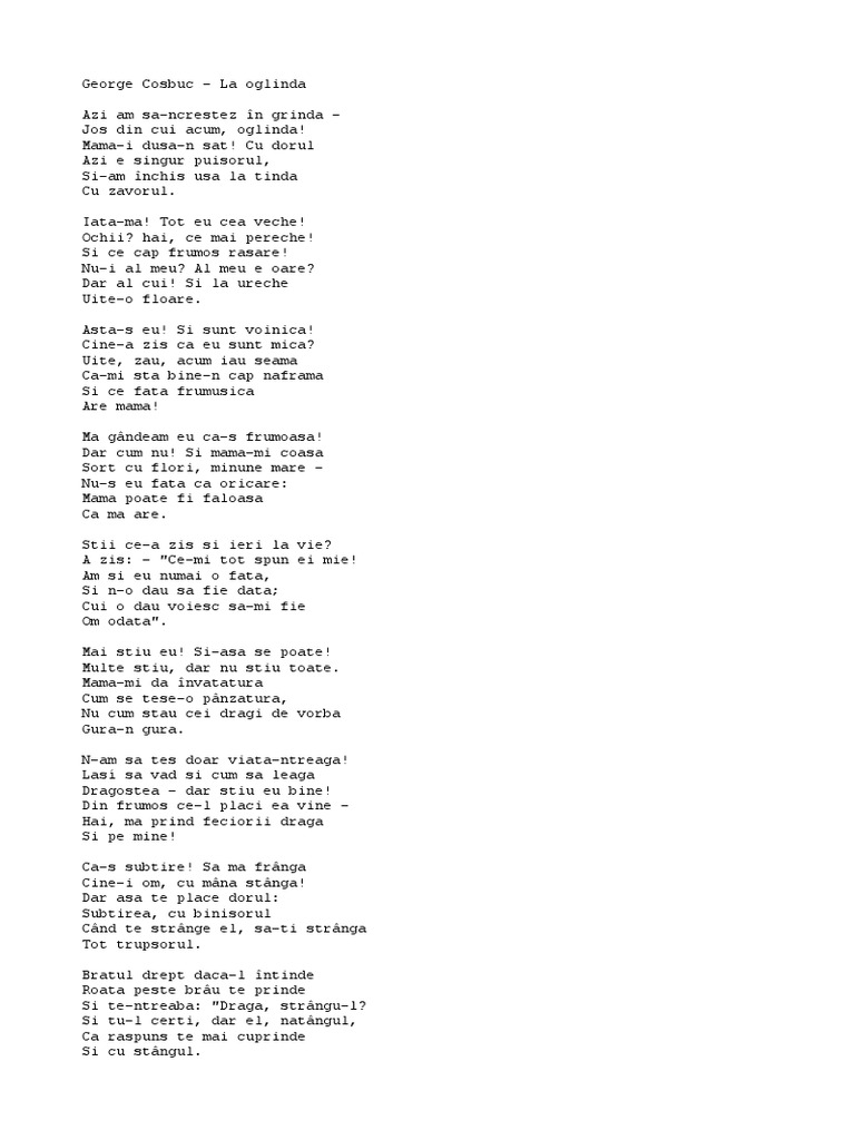 La Oglinda George Cosbuc Interpretata Si Ilustrata Cu Fotografii Al