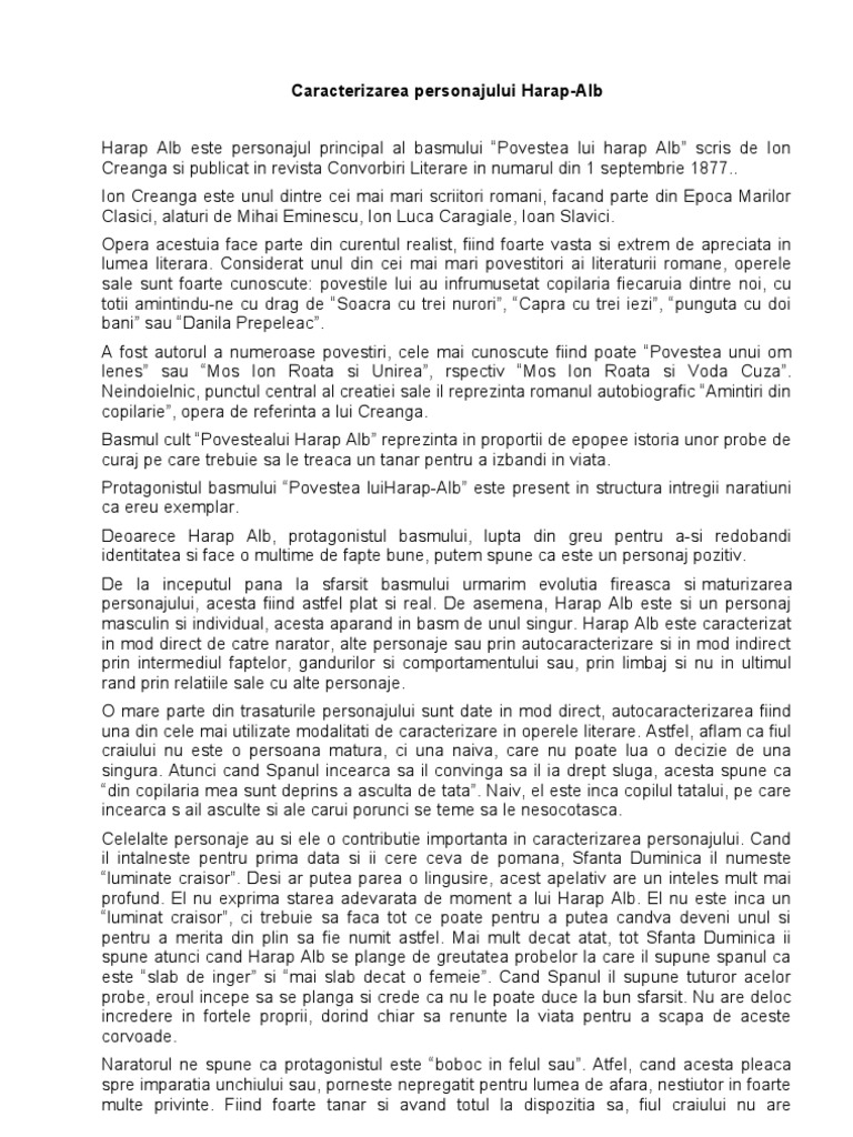 Doc Caracterizare Harap Alb Ana Maria Lepădatu Academia Edu