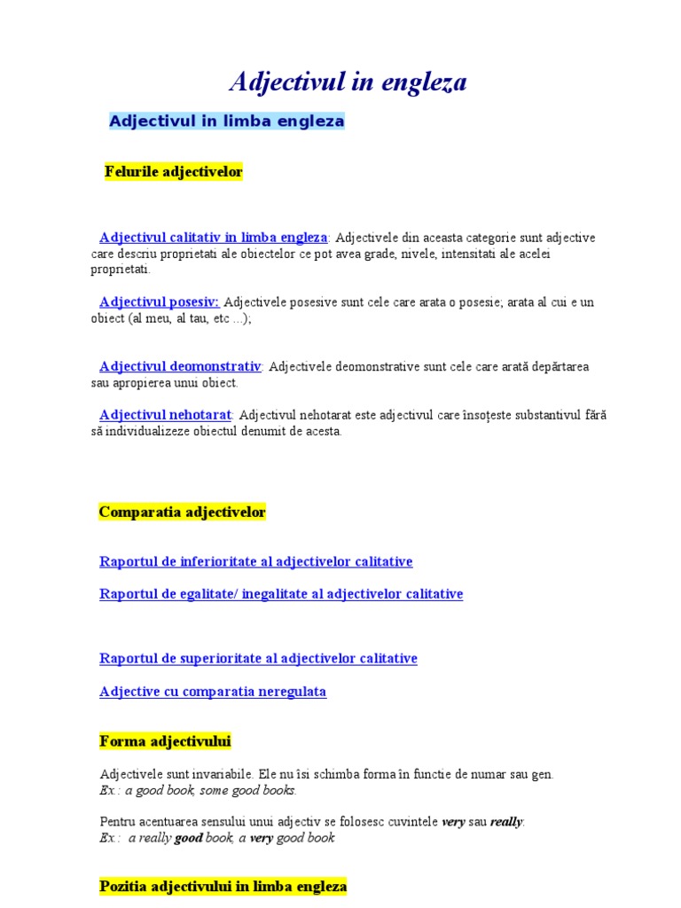 Adjectivul In Engleza