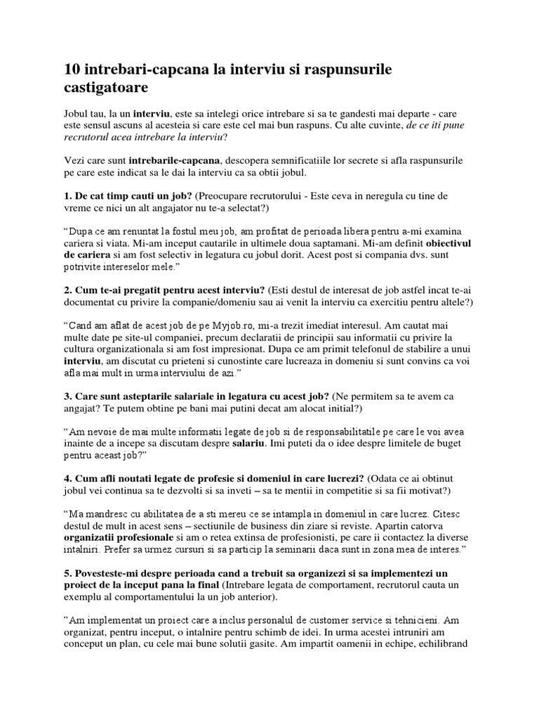 Doc Intrebari Si Raspunsuri La Interviu Mihaela Andreea Academia Edu