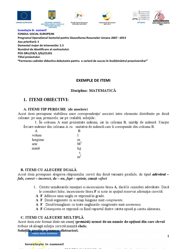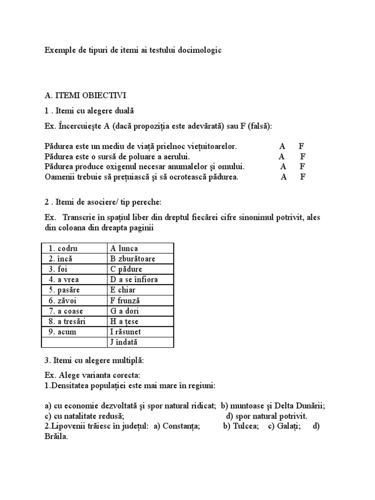 Exemple De Tipuri De Itemi Ai Testului Docimologic