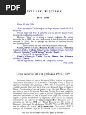 Lista Securistilor 1949 1989 Xxx