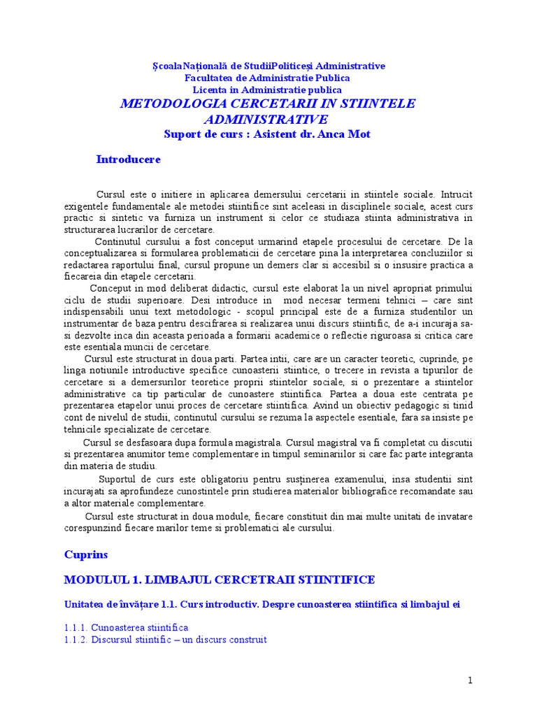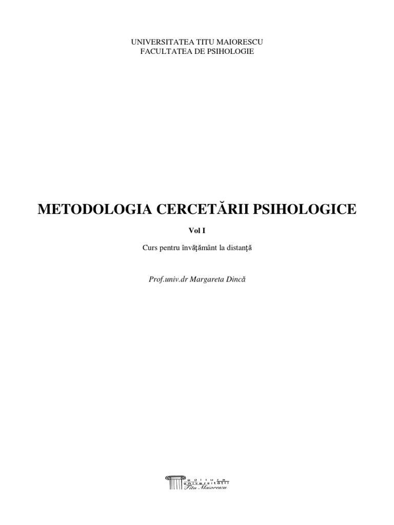 Metodologia Cercetarii Stiintifice Note De Curs De Margareta Dinca Si Alexandru Mihalcea Buc 2010
