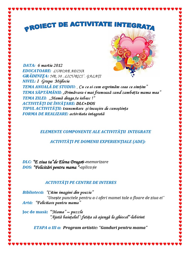 Adina Lupoae Proiect De Activitate Integrata Mama Draga Te Iubesc