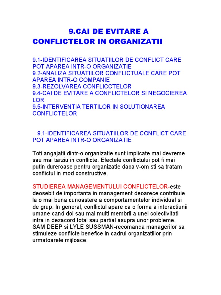 Evitarea Conflictelor In Organizatie