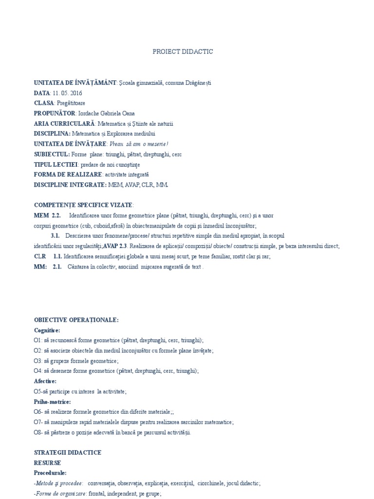 Doc Proiect De Lecţie Maria Tusan Academia Edu
