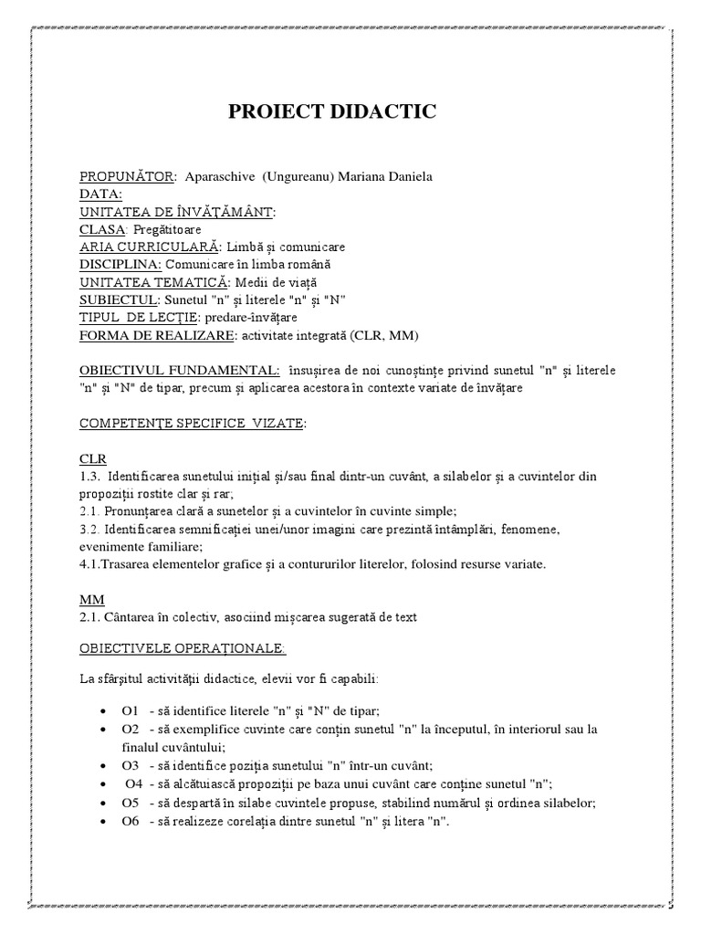 Litera M Proiect Didactic
