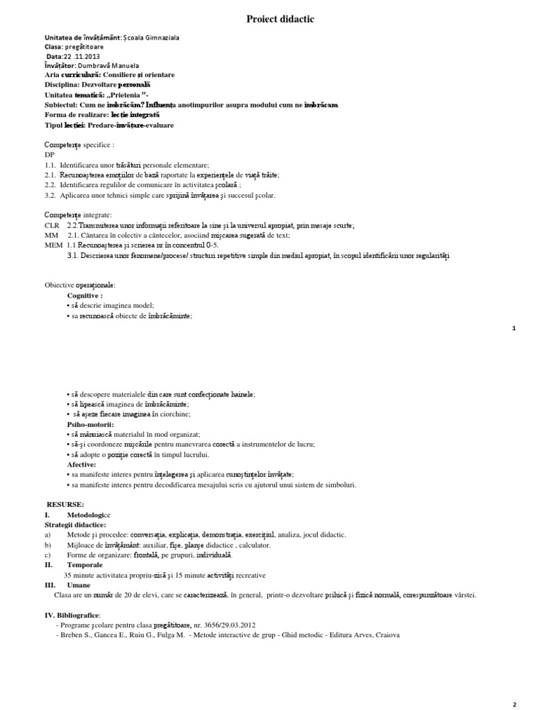 Doc Proiect Didactic Clasa Pregatitoare Clasa A Ii A Clasa A Iv A Nico Halcea Academia Edu