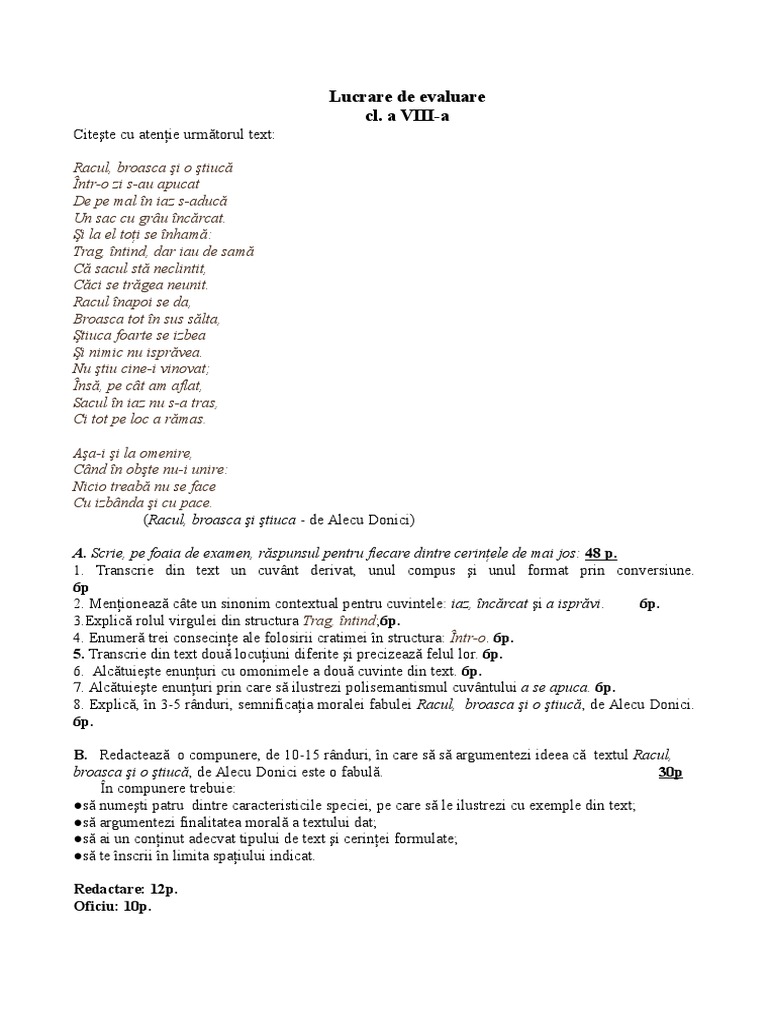 Racul Broasca Si Stiuca Scrie In Cite Un Enunt Idee Principala Pe Care O Desprinzi Din Fiecare Brainly Ro