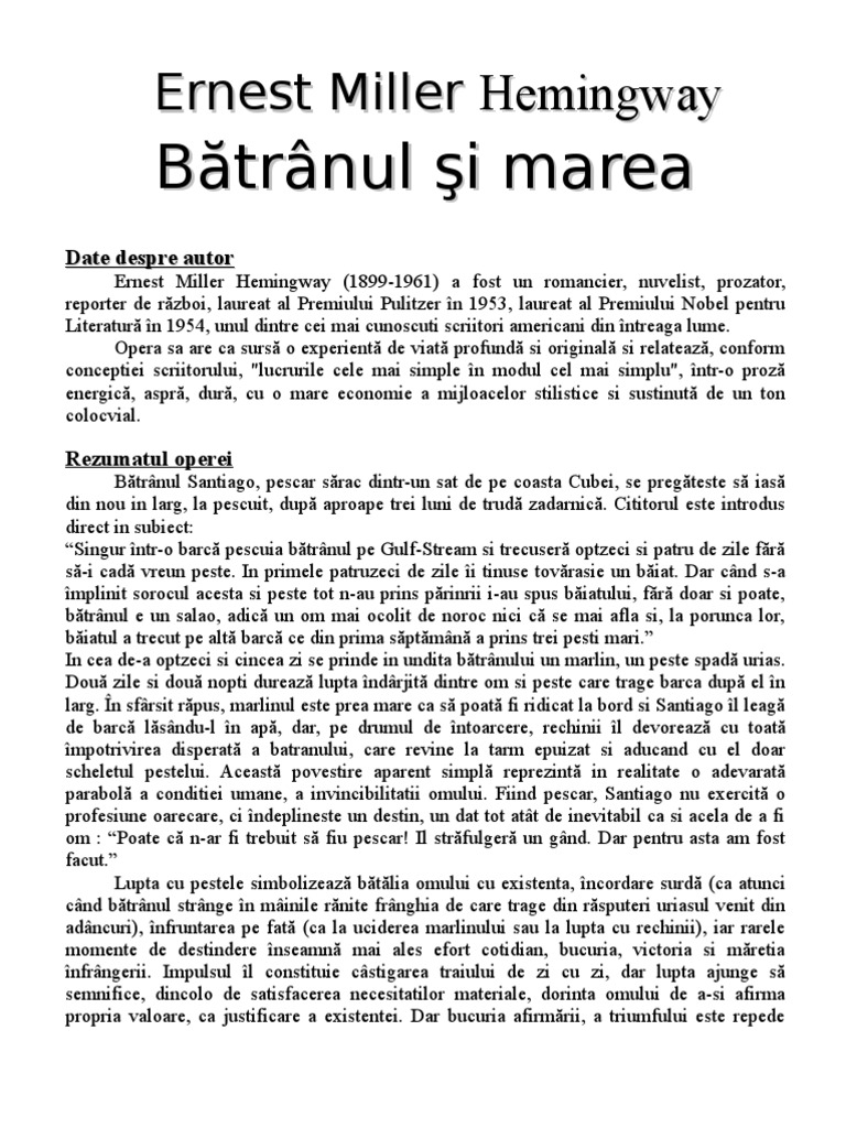 3 Rezumate Scurte Bătranul și Marea De Ernest Hemingway Rezumate Cărți Citeste Cărți Online Pdf Caracterizări Referate Si Comentarii Cărți