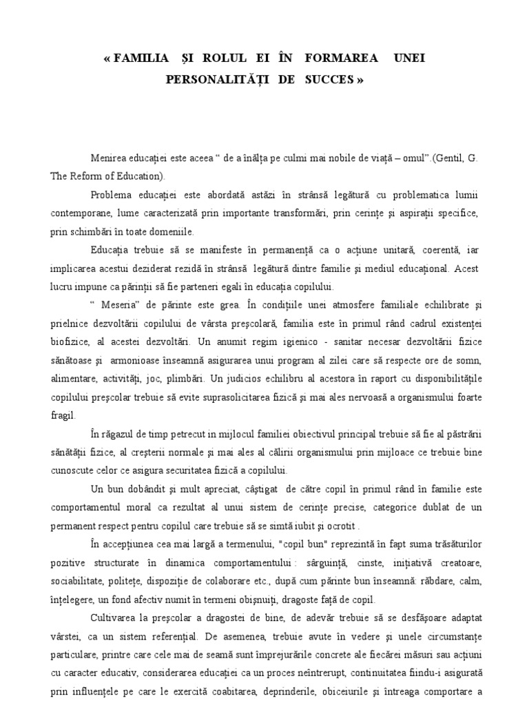 Rolul Familiei In Formarea Individului Rolul Educatiei
