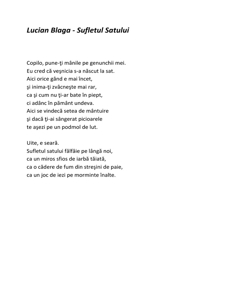 Sufletul Satului De Lucian Blaga Bzi Ro