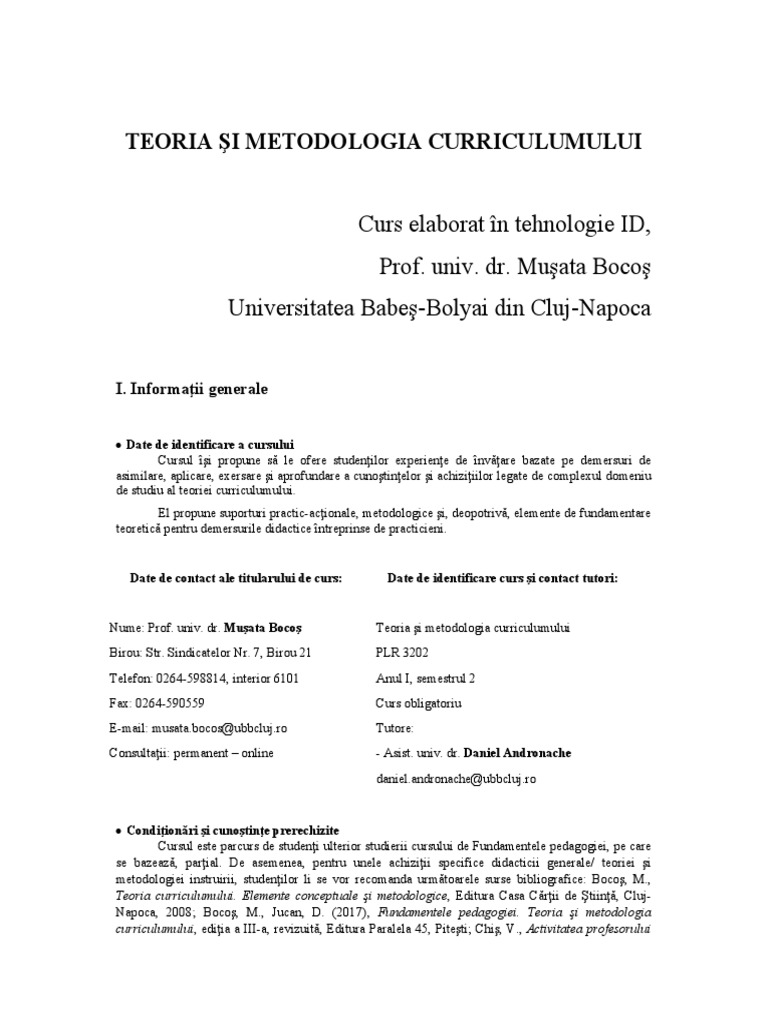 Teoria Si Metodologia Curriculum Ului Mata Curs Pdf