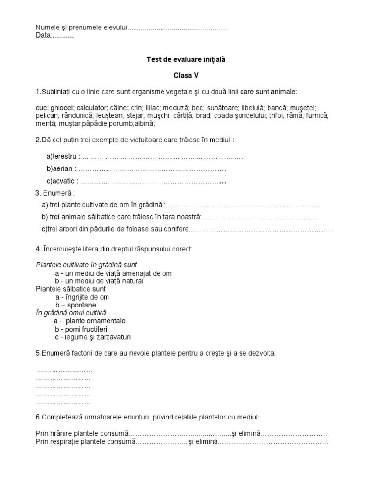 Test Initial Clasa 6