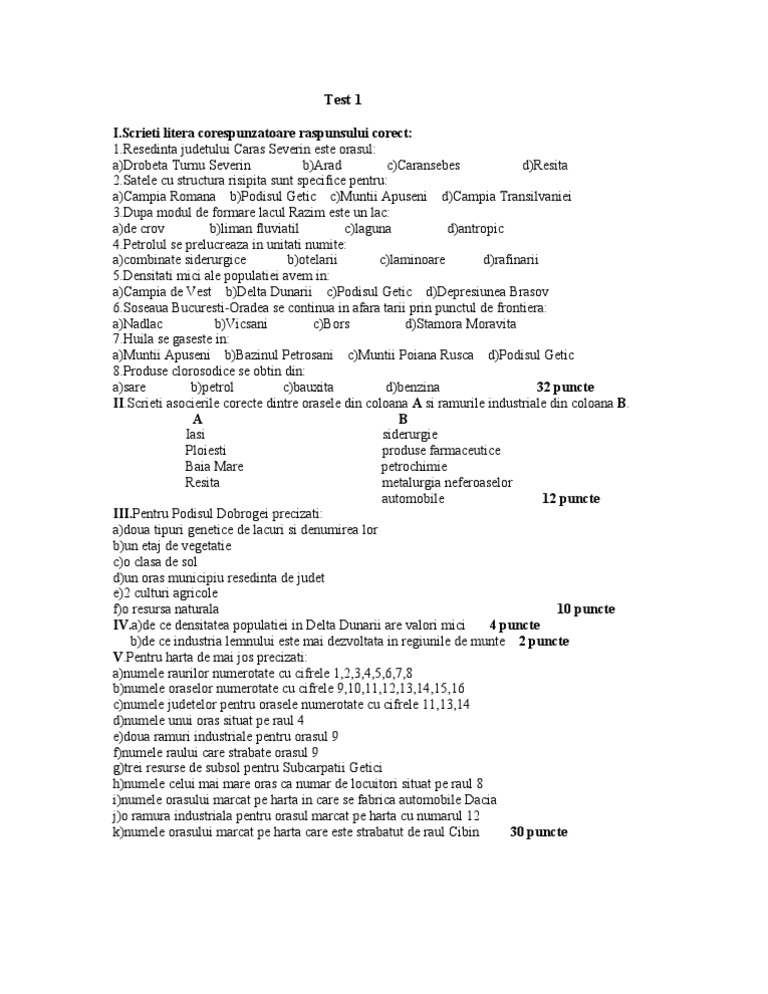 Test De Evaluare Cls A Viii A Populatia Si Asezari