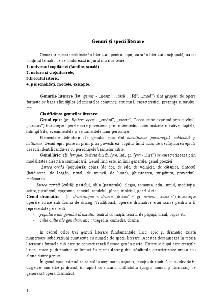 Genuri Si Specii Predilecte In Literatura Pentru Copii