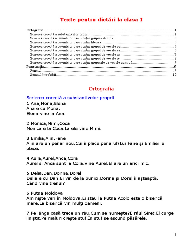 Cl 1 Texte Pentru Dictari