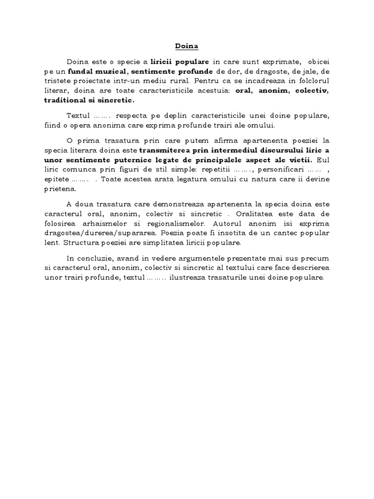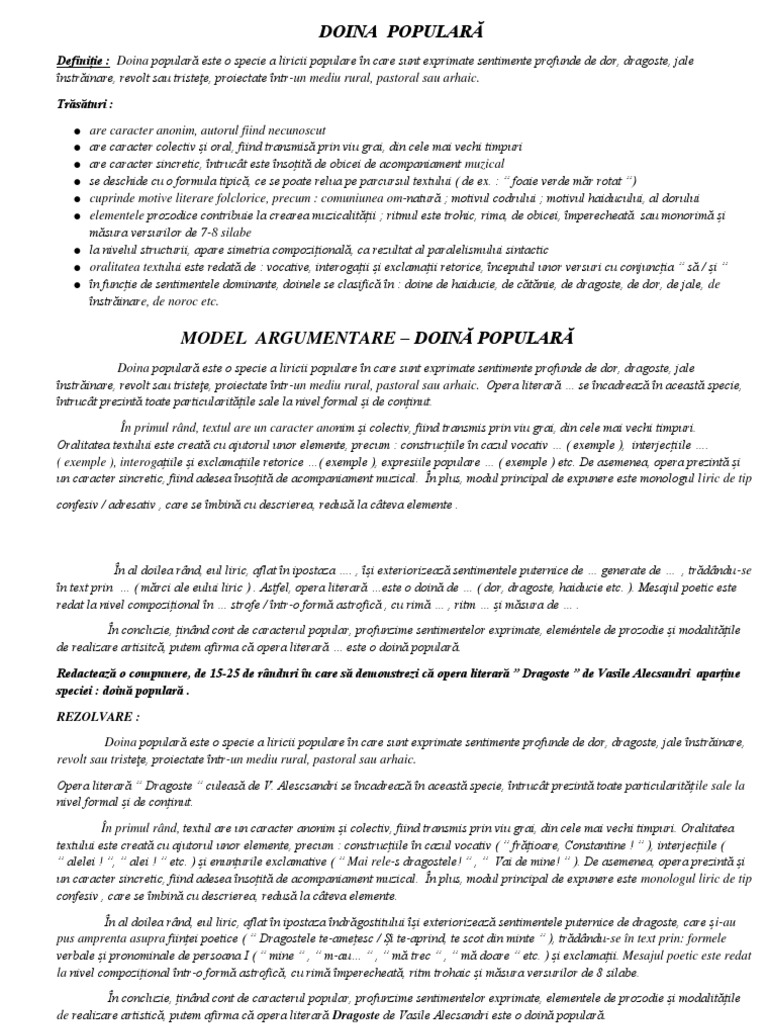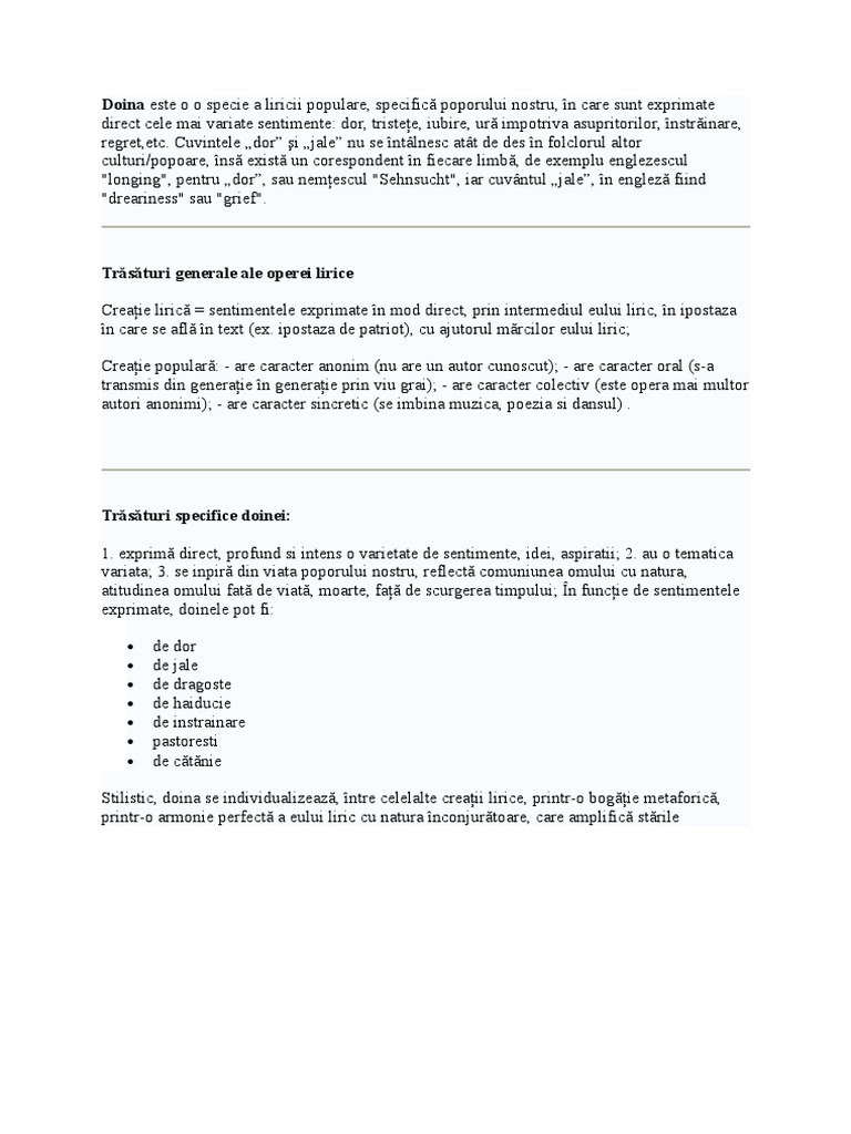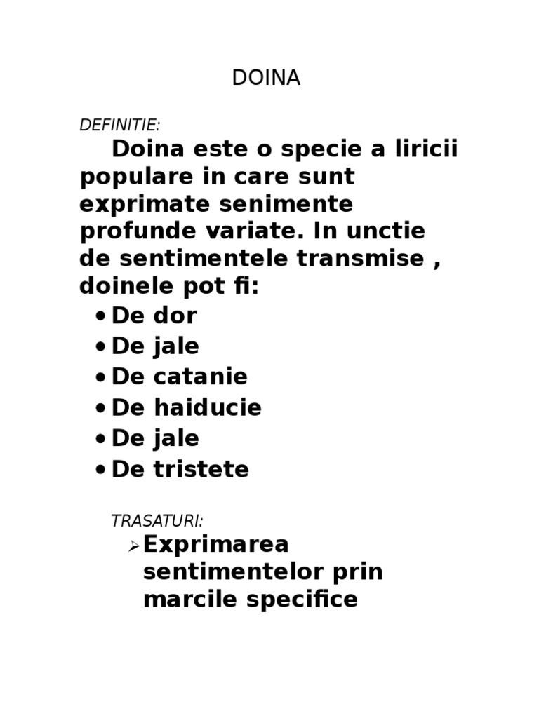 Doina Este O O Specie A Liricii Populare Specifică Poporului Nostru In Care Sunt Exprimate