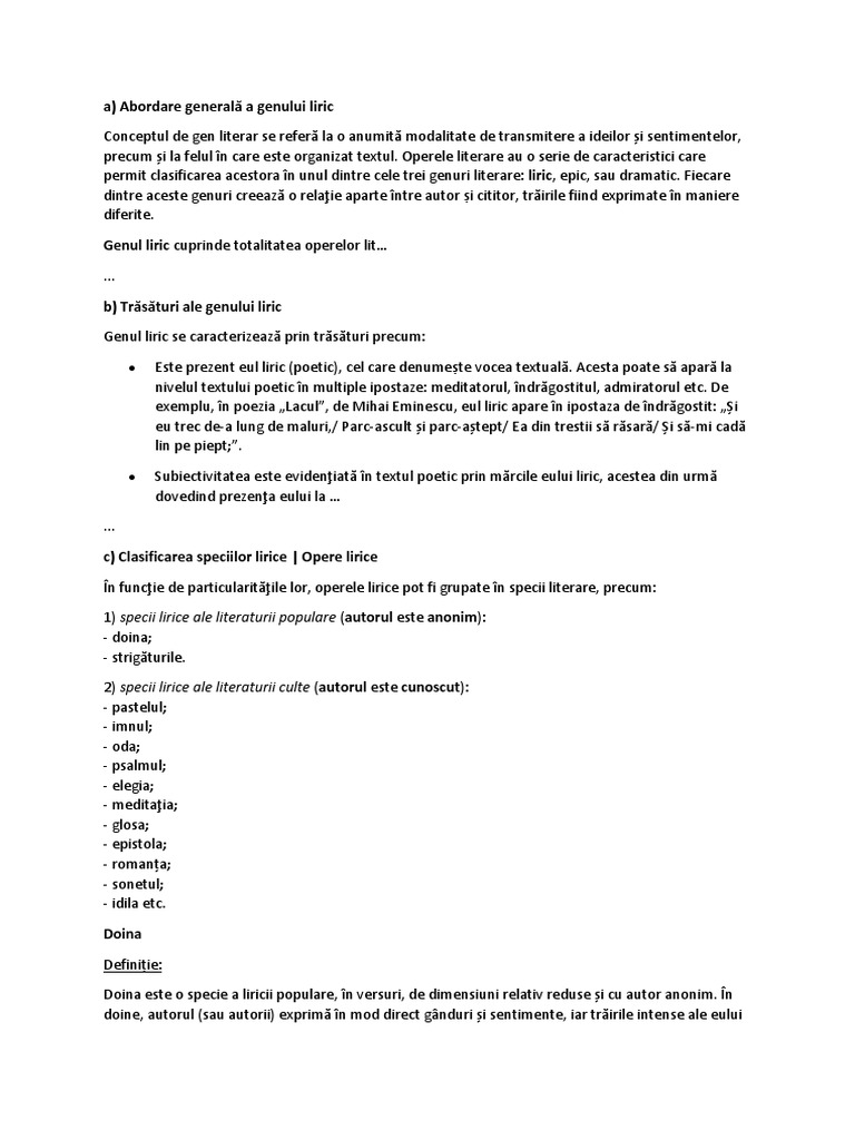 A Abordare Generală A Genului Liric